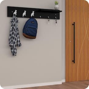 Além das chaves, também é possível guardar outros objetos como blusas, bonés, carteira, celular ou decorar com vaso de plantas ou porta-retratos.