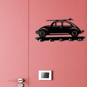 Decore sua casa ou presenteie seus amigos. Lindo Porta Chaves Fabricado com Mdf de 1a. qualidade sua pintura é a mesma utilizada em automóveis com aplicação de primer, lixamento e aplicação de tinta Laca automotiva na cor clássica preto Cadillac com acabamento acetinado. MDF de 3 mm e 6mm na base do suporte dos pinos. Produto resistente, leve e de fácil instalação. Especificações Técnicas: Medidas: comprimento: 22 cm altura: 2 cm largura: 11 cm Material: mdf 3mm Cor: preto Tema: carro Formas de instalação: basta utilizar fitas dupla face Quantidade: 1 unidade Características específicas: pinos dourados com acabamento