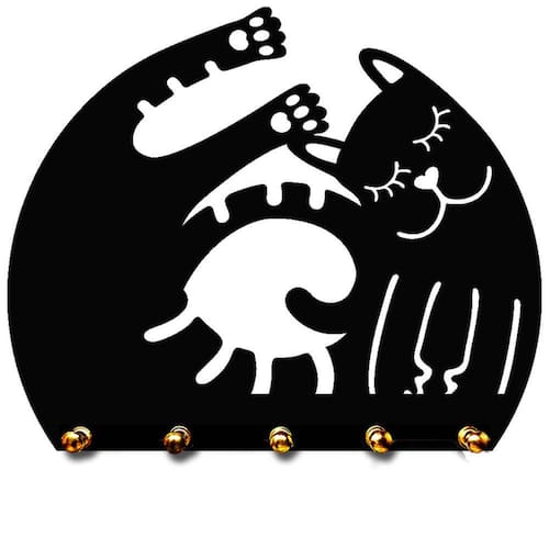 Decore sua casa ou presenteie seus amigos. Lindo Porta Chaves Fabricado com Mdf de 1a. qualidade sua pintura é a mesma utilizada em automóveis com aplicação de primer, lixamento e aplicação de tinta Laca automotiva na cor clássica preto Cadillac com acabamento acetinado. MDF de 3 mm e 6mm na base do suporte dos pinos. Produto resistente, leve e de fácil instalação. Especificações Técnicas: Medidas: comprimento: 20 cm altura: 2 cm largura: 15 cm Material: mdf 3mm Cor: preto Tema: gato Formas de instalação: basta utilizar fitas dupla face Quantidade: 1 unidade Características específicas: pinos dourados com acabamento
