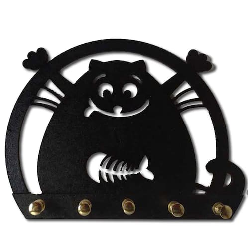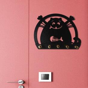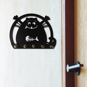 Decore sua casa ou presenteie seus amigos. Lindo Porta Chaves Fabricado com Mdf de 1a. qualidade sua pintura é a mesma utilizada em automóveis com aplicação de primer, lixamento e aplicação de tinta Laca automotiva na cor clássica preto Cadillac com acabamento acetinado. MDF de 3 mm e 6mm na base do suporte dos pinos. Produto resistente, leve e de fácil instalação. Especificações Técnicas: Medidas: comprimento: 20 cm altura: 2 cm largura: 15 cm Material: mdf 3mm Cor: preto Tema: gato Formas de instalação: basta utilizar fitas dupla face Quantidade: 1 unidade Características específicas: pinos dourados com acabamento