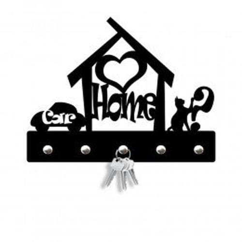 Porta Chaves Decorativo Sofisticação e personalidade na decoração de sua casa continuam sendo nossa maior missão Agora organizar e lembrar-se de suas chaves, será muito mais divertido com este lindo "porta chaves" da New Decor. Você pode usar em sua casa, no estritório, no comércio ou ambientes preferidos. Também pode dar de presente, fazer uma surpresa, surpreender Este lindo produto é fabricado em mdf laminado de 06 seis milímetros, com perfeito corte a laser, e na cor preto. Características técnicas: Porta chaves de mdf laminado 06 seis milímetros Cor - preto Largura: 20cm Capacidade: 5 chaves Pendurador em metal Acompanha fita dupla face 3m para fixação Observações importantes Usar em ambientes internos. Para higienização, basta utilizar apenas uma flanela ou pano pouco umedecido em água. Não expor diretamente ao sol. Não utilize produtos químicos. Ean: 7908245999994