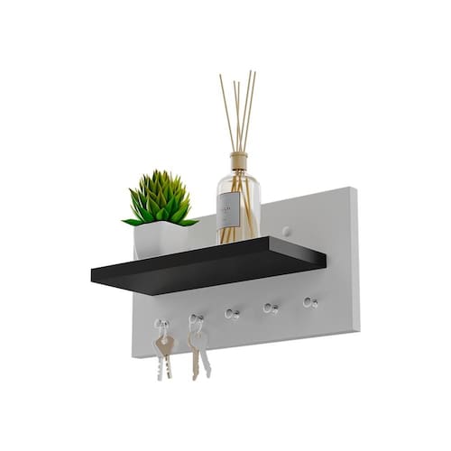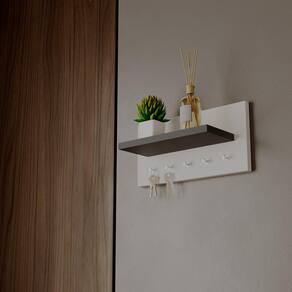 Produzido em madeira MDP de 15mm na cor branco com preto, adapta-se facilmente a diferentes estilos de decoração. Acompanha 2 parafusos e buchas para fixação na parede. Caso prefira não furar, é possível instalar utilizando fita dupla face (não inclusa).