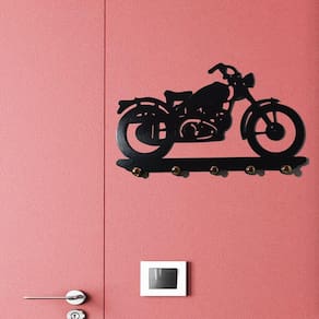 Decore sua casa ou presenteie seus amigos. Lindo Porta Chaves Fabricado com Mdf de 1a. qualidade sua pintura é a mesma utilizada em automóveis com aplicação de primer, lixamento e aplicação de tinta Laca automotiva na cor clássica preto Cadillac com acabamento acetinado. MDF de 3 mm e 6mm na base do suporte dos pinos. Produto resistente, leve e de fácil instalação. Especificações Técnicas: Medidas: comprimento: 24 cm altura: 2 cm largura: 15 cm Material: mdf 3mm Cor: preto Tema: moto Formas de instalação: basta utilizar fitas dupla face Quantidade: 1 unidade Características específicas: pinos dourados com acabamento
