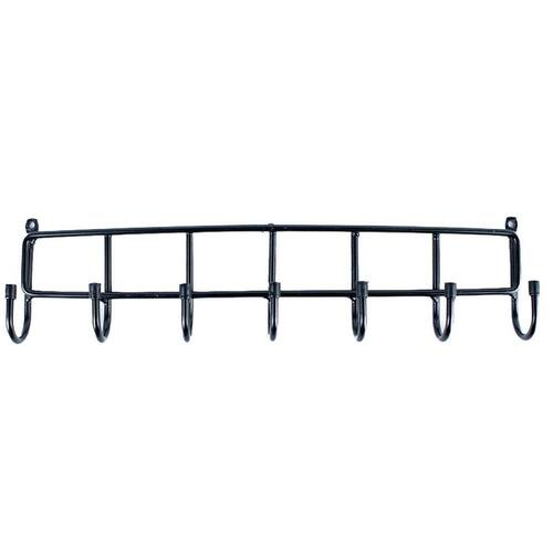 Especificações Material: aço Cor: preto fosco Ganchos: 7 hastes Comprimento: 33cm Espaço entre hastes: 5cm Altura: 7cm Peso suportado: 3kg aguenta até mais, mas recomendamos não forçar os parafusos Marca: 123 Organizei