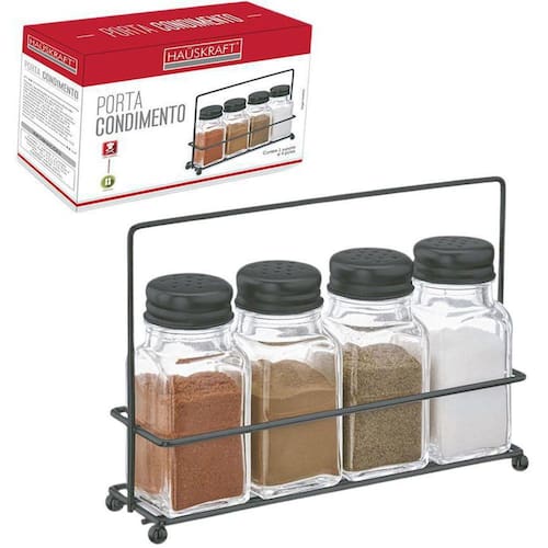 Porta Condimento De Vidro Com 4 Peças 80Ml + Suporte Aramado Black Kauskraft Capacidade: 80ml Tamanho aproximado: Pote: 4,7 x 4,7 x 10cm Suporte: 17,5 x 5,5 x 12,5cm Tamanho aproximado da caixa: a:13xl:18xp:5,5cm Peso aproximado: 515g Tipo de produto: porta condimento 4 pecas 80ml + suporte aramado hauskraft Cor: transparente com detalhes preto Composição: vidro e metal