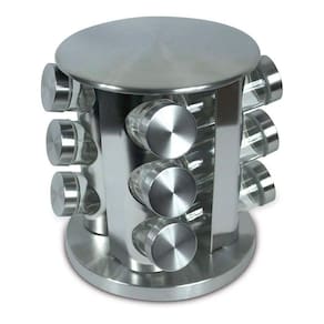 - 12 potes de vidro com tampas herméticas para manter os temperos frescos por mais tempo. - Base giratória 360 em aço inox, proporcionando fácil acesso e economia de espaço. - Design compacto e elegante, ideal para qualquer estilo de cozinha. - Material resistente e durável, garantindo longa vida útil ao produto. - Dimensões: 19 x 19 x 24 - Medidas Frascos: Altura 9,5cm x Diâmetro 4cm