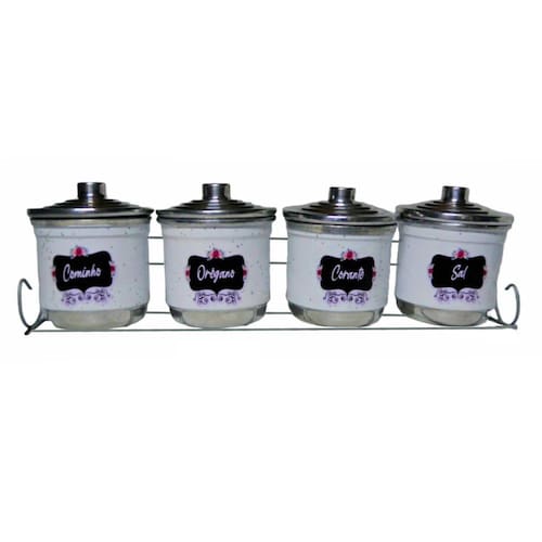 É um conjunto de potes organizadores para temperos, que auxilia no preparo das refeições, além de dar um charme especial para a cozinha. Posicionar o porta temperos longe da luz do sol, do calor do fogão e de locais com excesso de umidade é imprescindível para a conservação dos condimentos. Reserve um espaço fresco e arejado para manter o objeto e garantir a durabilidade dos temperos.