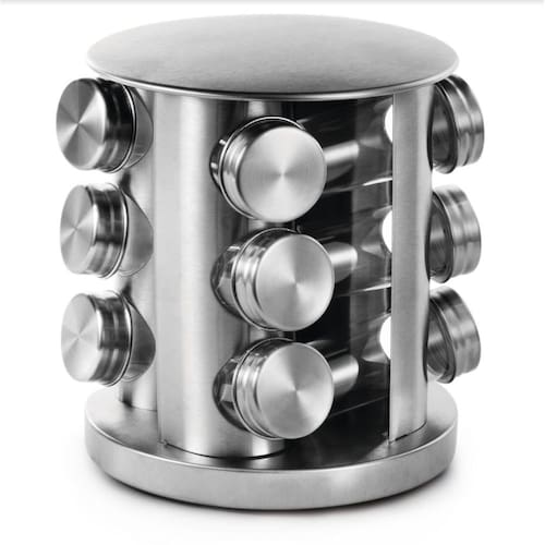 Porta Condimentos em Inox Com Base Giratória Funcionamento O kit porta condimentos em inox funciona de maneira bastante simples. Para utilizá-lo basta que se abra o pote, adicione o tempero em seu interior, feche e pronto. O grande diferencial deste pote está no material do mesmo em aço inoxidável e totalmente vedado, o que permite que o tempero seja totalmente isolado de efeitos externos e possua excelente qualidade e durabilidade. Outra grande vantagem do kit porta condimentos está na base giratória em aço inoxidável que o acompanha. Isso permite que os temperos sejam expostos de maneira extremamente prática e bonita. Pot fim, cada pote possui vedação com rosca e tampa dosadora, o que faz com o tempero seja dosado com precisão e praticidade. Mais características - O kit acompanha 12 porta condimentos; - Material: Aço inoxidável; - Acompanha base giratória em aço inoxidável; - Possui tampa dosadora para temperos; - Formato ergonômico e prático; - Pode ser utilizado para qualquer tipo de tempero; - Estrutura reforçada não amassa ou deforma - Extremamente leve para girar; - Altamente resistente a quedas; - Design Inovador e Moderno; - Leve e fácil de manejar; - e Facilidade na troca; Medidas Tamanho: 21,5 x 19 x 19 cm Peso: 1700g Embalagem: Litografada