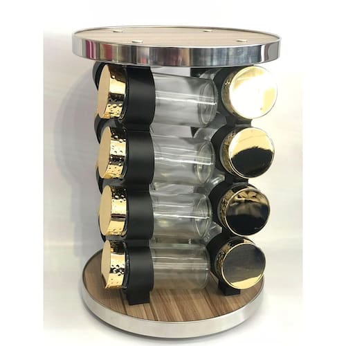 1 Porta Condimentos giratório 16 Frascos Inox Tampa Dourada