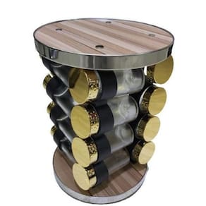 Aprimore os sabores de suas refeições caseiras com a prateleira de especiarias de 16 frascos de aço inoxidável do mercado de especiarias Este carrossel giratório de especiarias é uma adição de alta qualidade ao seu espaço culinário. Equipado com 16 frascos de vidro individuais para armazenamento de especiarias; oferecendo todos os seus temperos essenciais do dia a dia, este conjunto é essencial para criar alimentos ricos em sabor Com um design de madeira e aço inoxidável fresco e contemporâneo, fica fantástico em qualquer bancada de cozinha. Apresentado com uma bela caixa, este porta-temperos é um presente maravilhoso para qualquer apreciador de cozinha ávido.