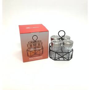 Porta Condimentos 4 Peças c/ Suporte Luxo Descubra a combinação perfeita de estilo e funcionalidade com nosso Porta Condimentos com Suporte Luxo e 4 Peças. Ideal para qualquer ambiente, desde a cozinha até a mesa de jantar, este conjunto traz um toque de sofisticação e organização, facilitando o acesso aos seus temperos favoritos.