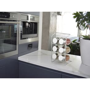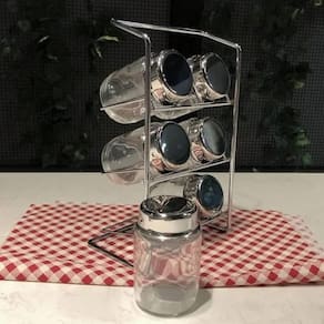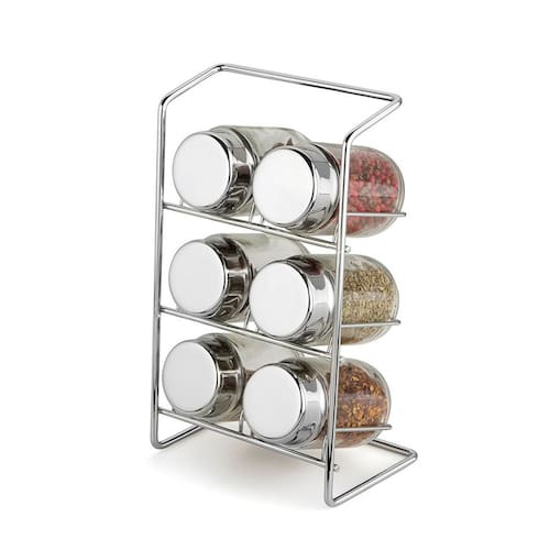 Porta Condimentos de Bancada Elegance em Aço Inox com 6 potes de Vidro - Forma Utilidades