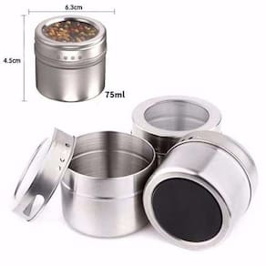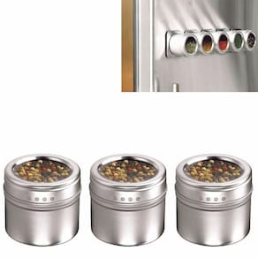 Com imã na sua base, cada pote pode ser facilmente fixado na sua geladeira ou lateral do seu fogão.