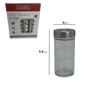 ESPECIFICAÇÕES: Material: Aço Inox e Vidro Dimensões: -Suporte: Alt.: 21cm x Diâmetro: 29cm -Pote: Comprimento: 9,2cm x Diâmetro : 7cm Peso: Aprox. 2,1kg Giratório em 360º