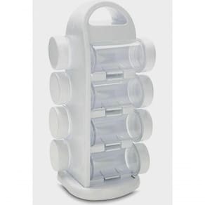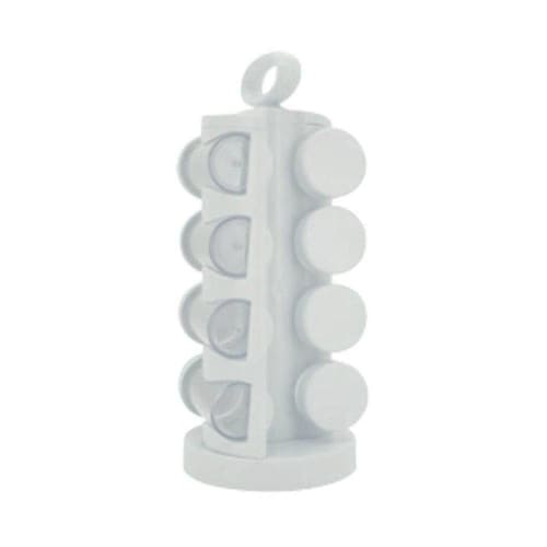 Este porta condimentos produzido em Hips e Poliestireno, e é composto por 8 recipientes para armazenagem e uma base giratória na cor Branca.