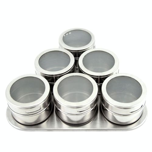 Porta Condimentos Magnético 6 Peças-Clink DESCRIÇÃO - Modernos e bonitos, os porta condimentos podem ser fixados em geladeiras, freezers, fornos e microondas, dispondo seus temperos com muito estilo e de forma extremamente prática. - Fixe em qualquer superfície metálica da sua cozinha CARACTERÍSTICAS - Aço inoxidável escovado, imã e suporte metálico. - Não deixa cheiro nem gosto. - Visor de acrílico. - Cavidades diferenciadas para permitir a saída do tempero. - Completamente desmontável para limpeza. - Vedação completa sem vazamentos. - Material: Aço Inox. - Cor: Metálico. DIMENSÕES: - Frascos: 4,5x6,5 cm. ITENS INCLUSOS - 4 Frascos Porta Condimentos Magnético Vantegens: Podem ser fixados em geladeiras, freezers, fornos e micro-ondas - Aço inoxidável escovado, imã e suporte metálico - Não deixa cheiro nem gosto - Visor de acrílico - Cavidades diferenciadas para permitir a saída do tempero - Completamente desmontável para limpeza - Vedação completa sem vazamentos - Lavável na lava-louças Ean: 7898503035147