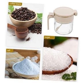 Especificações: Dimensões: Porta Condimentos: 11 cm altura x 7,5 cm diâmetro / 8cm altura x 2,5cm diâmetro Composição: Plástico e Vidro Capacidade: 250ml Cor: Transparente com Tampa Bege / Colher: Branca Peso: 210g