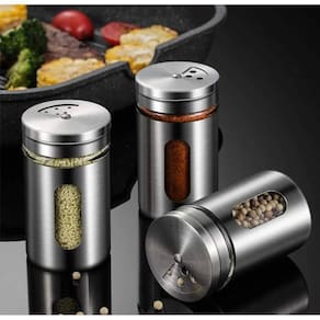 Porta Condimentos Saleiro Inox e Vidro Com Visor Médio Lindo Porta Condimentos Saleiro Inox e Vidro Com Visor Médio produto rico em detalhes e beleza, em aço inox e vidro tornando uma peça atrativa e decorativa, tanto na cozinha, mesa ou área da churrasqueira. Os temperos ficam em vidros com tampa dosadora totalmente vedada, garantindo a qualidade e durabilidade do produto. O porta tempero tem um visor para que você possa escolher facilmente o que precisa para temperar sua comida da melhor forma. Fácil de limpar, de vidro são cobertos por tampa de inox e acabamento de inox nas laterais, apresentando um ótimo design e permite manter sua cozinha limpa e suas especiarias em bom estado de conservação. Medida do pote: 8 cm x 4,5cm altura x diâmetro . Cada pote comporta 80 ml de temperos Material: Aço inoxidável e Vidro; Possui tampa dosadora para temperos Tampa giratória de 4 posições: fechada sem orifícios , com orifícios 2 mm, 3 mm e 4 mm. Estrutura reforçada não amassa ou deforma ; Ref:6963 Ean: 7908630207840