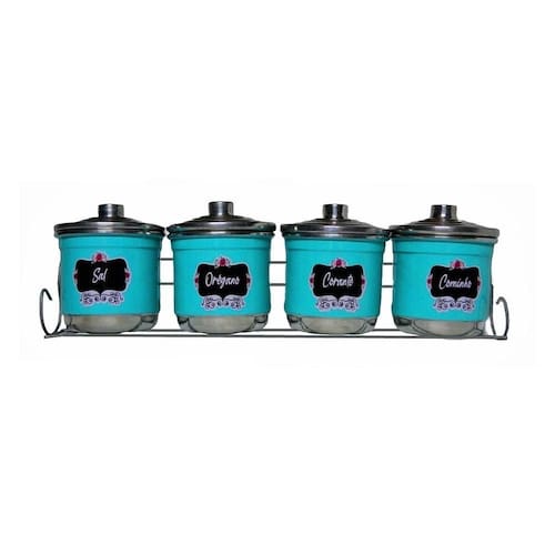 Porta Condimentos Tempero Organizador 4 Potes Alumínio Azul
