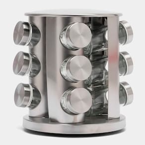 - 12 potes de vidro com tampas herméticas para manter os temperos frescos por mais tempo. - Base giratória 360 em aço inox, proporcionando fácil acesso e economia de espaço. - Design compacto e elegante, ideal para qualquer estilo de cozinha. - Material resistente e durável, garantindo longa vida útil ao produto. - Dimensões: 19 x 19 x 24 - Medidas Frascos: Altura 9,5cm x Diâmetro 4cm