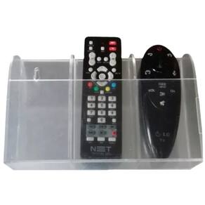 - perfeito para organizar o seu local de trabalho, escritório, quarto, sala, etc. - decoração com design moderno e discreto. - produzido em acrílico de 3mm na cor transparente. - capacidade para 3 controles. Garantia de troca apenas em caso de durante o transporte. Tamanho: