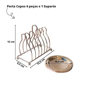 Porta copos de luxo com pratos de apoio aos copos em metal detalhado e suporte. Ideal para mesa posta, decoração de espaço de café e ambientes.