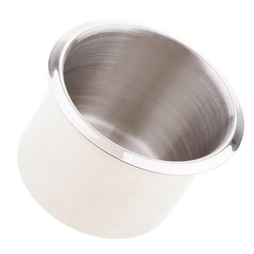 Porta Copo Em Aço Inox De Embutir Compacto O Porta é produzido em Aço INOX, com excelente acabamento. Possui abertura larga que comporta garrafas menores e apresenta desnível interno com estreitamento para melhor acomodar as garrafas e copos. Modelo raso com 40MM de altura, gerando uma maior armonia, indicado para fixação em tampas e mesas.