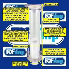 Porta copos acrílico dispenser suporte para copos chopp 300ml Dispenser acrílico de parede jsn para copos de chopp 300ml O dispenser acrílico de parede jsn para copos de chopp 300ml tem tubo confeccionado em pvc semirrígido e base superior e inferior injetado em plástico abs cristal. Ele possui garras escova em polietileno pe que ajustam a saída do copo. As varetas de fixação de uma base à outra são confeccionadas em aço carbono galvanizado. Mantém os copos organizados e protegidos contra sujidade. Acompanha uma tampa injetada em plástico abs e kit com 4 parafuso e buchas para fixação na parede. Cores disponíveis: acrílico/ fume Capacidade: 125 copos aproximadamente Diâmetro da boca: 8cm Medidas: 460mm altura x 160mm largura x 157mm profundidade