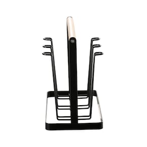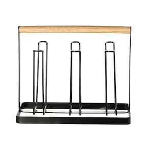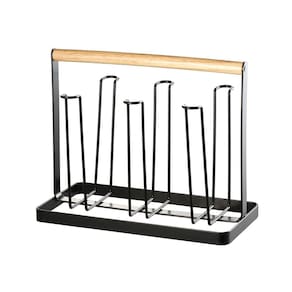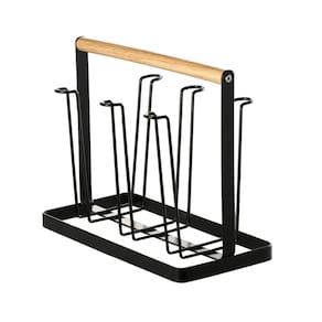 Ideal para quem busca praticidade e organização, o Porta-Copos Kas Country Preto é feito em ferro com revestimento preto resistente e durável. Com capacidade para comportar até 6 copos, tem alça para transporte em madeira e pode ser utilizado para escorrer os copos após lavar e também ir à mesa. Marca: Não Informado