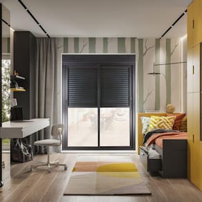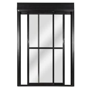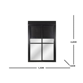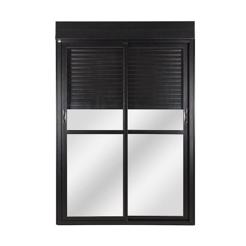 Porta Correr 2 Folhas Móveis com Persiana Integrada Controle Remoto Topsul 220x150 Preto Altura 220cm Largura 150cm Garantia de 5 anos Esquadrisul -