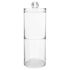 Porta Cotonete e Algodão Redondo Duplo em Acrílico Transparente Mantenha seus acessórios de maquiagem organizados com o Porta Cotonete e Algodão Disco Redondo em Acrílico para Organização. Este produto elegante e prático é perfeito para manter sua bancada de banheiro organizada e seus cotonetes e discos de algodão ao alcance das mãos enquanto você se maquia.