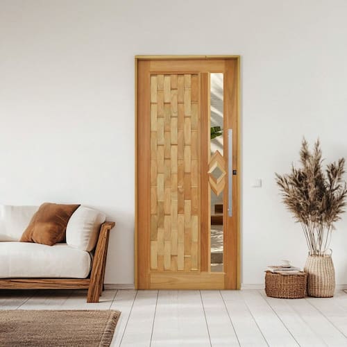 O Kit Porta Pronta de Madeira da Rodam é uma excelente escolha para quem deseja autonomia e praticidade, o kit acompanha fechadura, dobradiças, batente e a folha da porta em vários tamanhos que proporciona beleza e durabilidade ao ambiente. Acabamento do Puxador: Inox Acompanha Batedor: Não Acompanha Batente: Sim Acompanha Dobradiça: 03 Acompanha Fechadura: Sim Acompanha Guarnição: Não Acompanha Manual de Instalação: Sim Acompanha Puxador: 01 Acompanha Trinco: Não Altura: 210 cm Ambiente Principal: Sala de Estar Ambientes Recomendados: Externo Cor: Natural Cor do Batente: Natural Cor do Produto: Natural Elétrica: Não Isolamento Acústico: Não Itens Inclusos: 1 Porta, Manual de Montagem e Kit Ferragens Lado de abertura: Esquerda Largura: 102 cm Largura do Batente: 14 cm Linha ou Coleção: Couro em Pé Manual de Montagem e Instalação: https://cdn2.madeiramadeira.com.br/prd/rodam/2862181-1744898753-227749918-171179.pdf Marca: Rodam Material do Batente: Madeira Material do Puxador: Alumínio Necessita Montagem: Não Número de Folhas: 01 Origem do Produto: Nacional Peso: 87 kg Possui Grade: Não Preenchimento da Porta: Maciça Recomendações de Uso, Manutenção e Limpeza: Manter a limpeza do produto com pano seco e espanador, sem uso de agentes químicos. Resistência à Água: Não Textura da Porta: Almofadada Tipo de Dobradiça: Simples Tipo de Porta: Abrir Tipo de Puxador: Externo Vidro incluso: Não