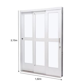Produto pronto para Instalação; Pintura na cor branco Poliéster; Não requer pintura a garantia; Fixação dos vidros com borracha EPDM; Produtos com escovas e borracha de vedação, que impedem a entrada de chuva; Vidros com espessuras de 3mm. Largura do Batente: 14 Acabamento do Puxador: Inox Acompanha Batedor: Acompanha Batente: Sim Acompanha Dobradiça: Não Acompanha Fechadura: Sim Acompanha Guarnição: Não Acompanha Manual de Instalação: Sim Acompanha Puxador: 02 Acompanha Trinco: Não Altura: 215 Ambiente Principal: Sala de Estar Ambientes Recomendados: Cor: Branco Cor do Batente: Branco Cor do Produto: Branco Cor do Vidro: Incolor Dimensão da Máquina da Fechadura: Elétrica: Não Escala de Brilho: Espessura: 14 Espessura do Vidro: 3 Informações Complementares: Isolamento Acústico: Não Itens Inclusos: 1 Porta e Manual de Instruções Lado de abertura: Esquerda Largura: 152 Linha ou Coleção: Manual de Montagem e Instalação: https://cdn2.madeiramadeira.com.br/atributo/ramassol/1127394-manual-porta-de-correr.pdf Material da Dobradiça: Material do Batente: Aço Material do Puxador: Aço Necessita Montagem: Não Número de Folhas: 03 Origem do Produto: Nacional Peso: 54.65 Possui Grade: Não Recomendações de Uso, Manutenção e Limpeza: Limpeza com pano umedecido com agua ou detergente neutro ; realizar limpeza periódica no trilhos retirando sujeiras ou restos de reboco ;assentar o produto no prumo, em nível e no esquadro. Tamanho: 215x152cm Textura da Porta: Tipo de Dobradiça: Tipo de Madeira: Tipo de Parede: Alvenaria;Drywall Tipo de Porta: Correr Tipo de Puxador: Externo Tipo de Vidro: Liso Vidro incluso: Sim Voltagem: