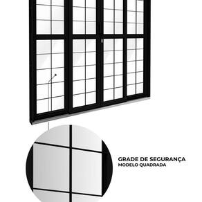 A grade quadrada confere identidade moderna e proteção, enquanto o vidro liso de 4cm garante a entrada de luz natural e sensação de amplitude.Produzida em aço com pintura eletrostática a pó, assegura acabamento uniforme e alta durabilidade. O trilho em aço inox proporciona deslizamento suave, o puxador em alumínio harmoniza o conjunto, e a fechadura com chave tetra reforça a segurança.
