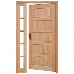 Porta montada de 5 almofadas horizontais. Composta por: 1 folha de porta, marco, guarnições para um lado, dobradiças e fechadura. Marco Com Vitrô de Um Lado. Folha da porta de 90cm. Fechadura Alavanca Stam. Porta de dobradiças. Produto pronto para instalação. Acompanha Batedor: Sim Acompanha Batente: Sim Acompanha Dobradiça: 02 Acompanha Fechadura: Sim Acompanha Guarnição: Sim Acompanha Manual de Instalação: Sim Acompanha Puxador: Não Acompanha Trinco: Não Altura: 213 cm codigo_ean: 7899641816131 Cor: Natural Cor do Batente: Marrom Cor do Produto: Natural Elétrica: Não Escala de Brilho: Fosco Espessura: 3 cm Itens Inclusos: 1 folha de porta, marco, guarnições para um lado, dobradiças e fechadura. Lado de abertura: Esquerda Largura: 119 cm Largura do Batente: 9,4 cm Manual de Montagem e Instalação: https://product-hub-prd.madeiramadeira.com.br/662560/documents/8126e301-1af0-4017-a27d-f7168062e056vaodasesquadriasconvertido.pdf Marca: Rondosul Material da Dobradiça: Aço Material do Batente: Madeira Material Principal: Madeira Maciça Medida do Vão: 215cmx121cm Necessita Montagem: Não Número de Folhas: 01 Origem do Produto: Nacional Peso: 63 kg Possui Grade: Não Preenchimento da Porta: Maciça Recomendações de Uso, Manutenção e Limpeza: O produto deve ser pintado e bem instalado para haver garantia. Produto sem no mínimo duas demãos de pintura e/ou mal instalado e/ou mal conservado são situações que não são aceitas pela garantia. Aconselhamos a imunização contra insetos (cupim) com produto adequado, pois a madeira não é tratada na fábrica. Textura da Porta: Almofadada Tipo de Dobradiça: Simples Tipo de Madeira: Eucalipto Tipo de Porta: Abrir Vidro incluso: Não Marca: Não Informado