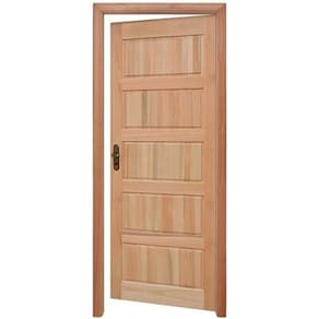 Porta montada de 5 almofadas horizontais. Composta por: 1 folha de porta, marco, guarnições para um lado, dobradiças e fechadura. Marco simples. Fechadura Alavanca Stam. Porta de dobradiças. Produto pronto para instalação. Acompanha Batedor: Sim Acompanha Batente: Sim Acompanha Dobradiça: 02 Acompanha Fechadura: Sim Acompanha Guarnição: Sim Acompanha Manual de Instalação: Sim Acompanha Puxador: Não Acompanha Trinco: Não Altura: 213 cm codigo_ean: 7899641802097 Cor: Natural Cor do Batente: Marrom Cor do Produto: Natural Elétrica: Não Escala de Brilho: Fosco Espessura: 3 cm Itens Inclusos: 1 folha de porta, marco, guarnições para um lado, dobradiças e fechadura. Lado de abertura: Direita Largura: 84,5 cm Largura do Batente: 9,4 cm Manual de Montagem e Instalação: https://product-hub-prd.madeiramadeira.com.br/662494/documents/e639ac37-c375-4b16-953b-6f00e8e7732fvaodasesquadriasconvertido.pdf Marca: Rondosul Material da Dobradiça: Aço Material do Batente: Madeira Material Principal: Madeira Maciça Medida do Vão: 215cmx86,5cm Necessita Montagem: Não Número de Folhas: 01 Origem do Produto: Nacional Peso: 45 kg Possui Grade: Não Preenchimento da Porta: Maciça Recomendações de Uso, Manutenção e Limpeza: O produto deve ser pintado e bem instalado para haver garantia. Produto sem no mínimo duas demãos de pintura e/ou mal instalado e/ou mal conservado são situações que não são aceitas pela garantia. Aconselhamos a imunização contra insetos (cupim) com produto adequado, pois a madeira não é tratada na fábrica. Textura da Porta: Almofadada Tipo de Dobradiça: Simples Tipo de Madeira: Eucalipto Tipo de Porta: Abrir Vidro incluso: Não Marca: Não Informado