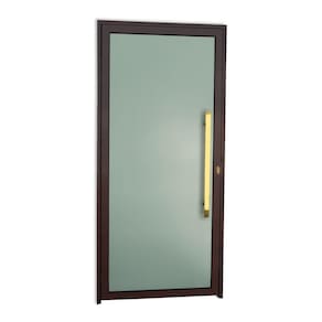 Porta de Aluminio 210x100cm com Puxador Super Murano Marrom Corten Dourado