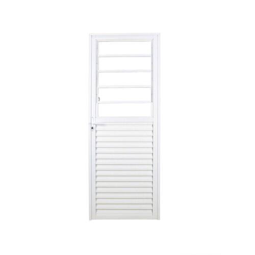 A Porta de Alumínio MGM possui um design diferenciado e que proporciona maior segurança devido aos perfis empregados em sua concepção. Pode ser confeccionado com perfis de alumínio ou de forma mista, empregando também vidros em sua estrutura. Utiliza fechadura broca 21 externa e dobradiças reforçadas com bucha de nylon. Esses produtos agregam robustez e beleza. Seu sistema de dobradiça suportam pesos elevados, o que propicia a aplicação de vidros de até 4 mm. Ambientes Recomendados: Externo;Interno Acabamento do Puxador: Polido Acompanha Batedor: Não Acompanha Batente: Sim Acompanha Dobradiça: 3 Acompanha Fechadura: Sim Acompanha Guarnição: Não Acompanha Manual de Instalação: Sim Acompanha Puxador: 1 Acompanha Trinco: Não Altura: 210 cm Ambiente Principal: Cozinha codigo_ean: 7898480676234 Cor: Branco Cor do Batente: Branco Cor do Produto: Branco Cor Predominante: Branco Elétrica: Não Escala de Brilho: Brilhante Espessura: 3 cm Espessura do Vidro: 3 mm Itens Inclusos: Batente, Dobradiças, Fechadura, Folha Lado de abertura: Esquerda Largura: 80 cm Largura do Batente: 12 cm Manual de Montagem e Instalação: https://product-hub-prd.madeiramadeira.com.br/601576/documents/62aedce9-cbe0-4873-aa50-dd390208f41074222manualaluminio2020022.pdf Material da Dobradiça: Alumínio Material do Batente: Alumínio Material do Puxador: Alumínio Material Principal: Alumínio Necessita Instalação: Não Necessita Montagem: Não Número de Folhas: 01 Origem do Produto: Nacional Peso: 13,3 kg Possui Grade: Não Possui Vidro: Sim Quantidade de Folhas: 01 Recomendações de Uso, Manutenção e Limpeza: Limpeza com água e sabão neutro. Tamanho: 210cm x 80cm Tamanho do Produto: 210cm x 80cm Textura da Porta: Veneziana Tipo de Dobradiça: Simples Tipo de Parede: Alvenaria;Drywall Tipo de Porta: Abrir Tipo de Puxador: Externo Tipo de Vidro: Mini Boreal Vidro incluso: Sim Ean: 7898480676234