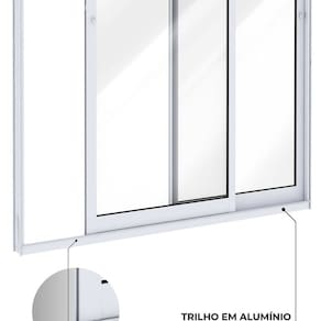 Os fechos embutidos e o trilho são em alumínio, na cor do produto, garantindo um visual harmonioso e funcional.