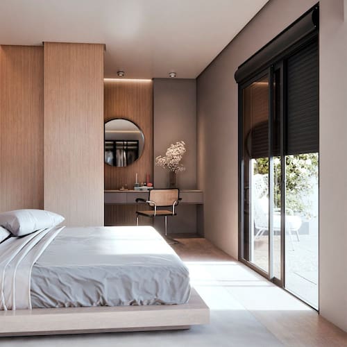Porta de Alumínio de Correr Lateral 2 Folhas Móveis com Persiana Integrada Automatizada — Lucasa Eccellente