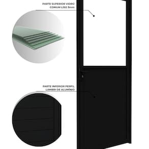 A Porta de Alumínio de Giro Mista com Lambri e Vidro 215x85 da linha Lucasa Ideale combina praticidade e funcionalidade com design moderno. Produzida em alumínio com pintura eletrostática a pó, garante maior aderência da tinta e uniformidade da cor.