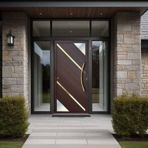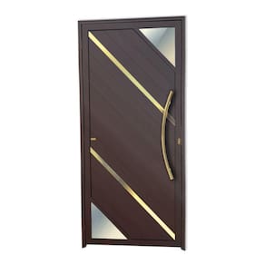 Porta de Aluminio Lambril 210x100cm com Puxador Super Oasis Brimak Marrom Corten Dourado
