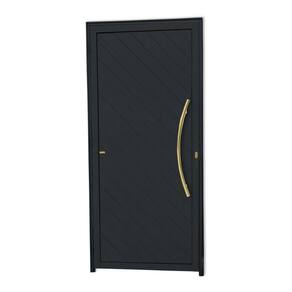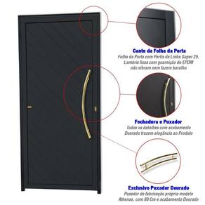 Portas de Abrir de Alumínio, Linha Super 25, Pintura Eletrostática Preta, 1 Folha de Abrir para o Lado Direito, Lambris Diagonais, Puxador Athenas 80 Cm Polido Dourado, Altura 210 Cm, Largura 100 Cm, Requadro 4,6 Cm, Garantia de 5 anos contra defeitos de fabricação.