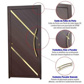Portas de Abrir de Alumínio, Linha Super 25, Pintura Eletrostática Corten, 1 Folha de Abrir para o Lado Direito, Lambris Diagonais, 2 Frisos Diagonais Polidos, Dourados e Envernizados, Puxador Athenas 80 Cm Polido Dourado, Altura 210 Cm, Largura 90 Cm, Requadro 4,6 Cm, Garantia de 5 anos contra defeitos de fabricação. Ambientes Recomendados: Externo Acompanha Batedor: Sim Acompanha Batente: Sim Acompanha Fechadura: Sim Acompanha Guarnição: Não Acompanha Manual de Instalação: Sim Acompanha Trinco: Não Altura: 210 Ambiente Principal: Sala de Estar Cor: Marrom Corten Dourado Cor do Batente: Marrom Cor do Produto: Marrom Corten Dourado Escala de Brilho: Fosco Espessura: 4.6 Isolamento Acústico: Não Itens Inclusos: 1 Porta completa montada com Fechadura, Dobradiças e embalagem protetora. Acompanha Puxador Lado de abertura: Direita Largura: 90 Largura do Batente: 4.6 Linha ou Coleção: Super 25 Manual de Montagem e Instalação: https://product-hub-prd.madeiramadeira.com.br/869689/documents/34c274db-94ce-432f-bd8f-6f9a66e3a08003manualesquadriasaluminio.pdf Material da Dobradiça: Alumínio Material do Batente: Alumínio Material do Puxador: Alumínio Necessita Montagem: Não Origem do Produto: Nacional Peso: 27.06 Possui Grade: Não Tamanho: 210cm x 90cm Tipo de Dobradiça: Simples Tipo de Parede: Alvenaria Tipo de Porta: Abrir Tipo de Puxador: Externo Vidro incluso: Não