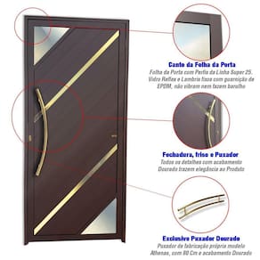 Apresentamos a nossa Porta de Alumínio da Linha Super 25, com pintura eletrostática na cor Corten. Esta porta possui uma folha que abre para o lado esquerdo, proporcionando um design moderno e funcional. O vidro é do tipo Reflex Champanhe com 3mm de espessura, que adiciona um toque de sofisticação. A porta é caracterizada por lambris diagonais com 2 frisos diagonais, polidos, dourados e envernizados, que realçam a sua beleza. A porta é equipada com um puxador Athenas de 80 cm, polido e na cor dourada, que adiciona um toque de elegância. As dimensões da porta são de 210 cm de altura e 90 cm de largura, com um requadro de 4,6 cm. Além disso, oferecemos uma garantia de 5 anos contra defeitos de fabricação, assegurando a qualidade do nosso produto. Ambientes Recomendados: Externo Acabamento do Puxador: Polido Acompanha Batedor: Sim Acompanha Batente: Sim Acompanha Fechadura: Sim Acompanha Guarnição: Não Acompanha Manual de Instalação: Sim Acompanha Trinco: Não Altura: 210 cm codigo_ean: 7898721693464 Cor: Marrom Corten Dourado Cor do Batente: Marrom Cor do Produto: Marrom Corten Dourado Escala de Brilho: Fosco Espessura: 4,6 cm Espessura do Vidro: 3 mm Isolamento Acústico: Não Itens Inclusos: 1 Porta completa montada com Fechadura, Dobradiças e embalagem protetora. Acompanha Puxador Lado de abertura: Esquerda Largura: 90 cm Largura do Batente: 4,6 cm Linha ou Coleção: Super 25 Manual de Montagem e Instalação: https://product-hub-prd.madeiramadeira.com.br/869552/documents/f8c9959f-76d8-47d9-9544-2c3c932fcaae09manualesquadriasaluminio.pdf Material da Dobradiça: Alumínio Material do Batente: Alumínio Material do Puxador: Aço Material Principal: Alumínio Necessita Montagem: Não Origem do Produto: Nacional Peso: 2812 kg Possui Grade: Não Tamanho: 210cm x 90cm Tamanho do Produto: 210cm x 90cm Tipo de Dobradiça: Simples Tipo de Parede: Alvenaria Tipo de Porta: Abrir Tipo de Puxador: Externo Tipo de Vidro: Controle Solar Vidro incluso: Sim