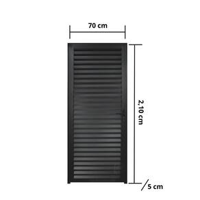As Portas Hale, foram desenvolvidas para trazer maior comodidade para seu lar. São produtos que garantem boa proteção contra chuva e variações de temperatura, pois possuem ótima vedação em suas frestas. Além disso, a Hale utiliza matéria prima da mais alta qualidade, garantindo maior durabilidade aos seus produtos! Acompanha Batedor: Não Acompanha Batente: Sim Acompanha Dobradiça: 03 Acompanha Fechadura: Sim Acompanha Guarnição: Não Acompanha Manual de Instalação: Sim Acompanha Puxador: Não Acompanha Trinco: Não Altura: 210 cm Ambiente Principal: Área de Serviço codigo_ean: 7898508941740 Cor: Preto Cor do Batente: Preto Cor do Produto: Preto Cor do Produto: Preto Cor Predominante: Preto Elétrica: Não Escala de Brilho: Semi-Brilho Informações Complementares: Pintura Eletrostática Isolamento Acústico: Não Itens Inclusos: 1 Porta, Kit Ferragens e Manual de Montagem Lado de abertura: Esquerda Largura: 70 cm Largura do Batente: 5 cm Manual de Montagem e Instalação: https://product-hub-prd.madeiramadeira.com.br/809574/documents/04def108-4035-47fe-be58-3870a1e10ff2ualdeinstalacaoemanutencao.pdf Material da Dobradiça: Alumínio Material do Batente: Alumínio Material Principal: Alumínio Necessita Instalação: Não Necessita Montagem: Não Número de Folhas: 01 Origem do Produto: Nacional Peso: 7,43 kg Possui Grade: Não Possui Vidro: Não Quantidade de Folhas: 01 Recomendações de Uso, Manutenção e Limpeza: Realize a limpeza com água e detergente neutro. Tamanho do Produto: 210cm x 70cm Textura da Porta: Veneziana Tipo de Dobradiça: Simples Tipo de Parede: Alvenaria;Drywall;Madeira Tipo de Porta: Abrir Vidro incluso: Não Marca: Hale Esquadrias Ean: 7898508941740