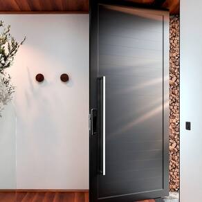 A Porta Pivotante com fechadura digital da Lucasa Eccellente foi desenvolvida para quem busca imponência, tecnologia e sofisticação em sua entrada principal.