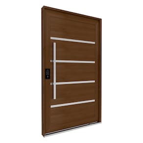 Porta de Alumínio Pivotante com Friso, Puxador de 1m e Fechadura Digital Intelbras