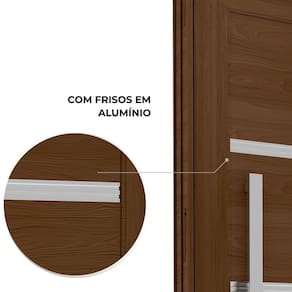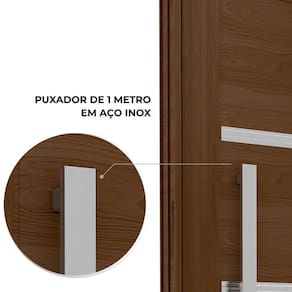 Os frisos em alumínio e o puxador de 1 metro em aço inox destacam o design moderno, enquanto o pivô em aço inox assegura robustez.
