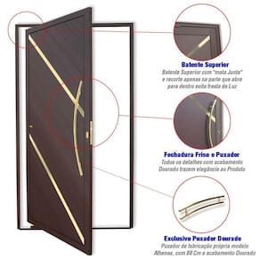 Porta Pivotante de Alumínio, Linha Super 25, Pintura Eletrostática Corten, 1 Folha de Abrir para o Lado Esquerdo, Lambris Diagonais, 2 Frisos Diagonais Polidos, Dourados e Envernizados, Puxador Athenas 80 Cm Polido Dourado, Altura 210 Cm, Largura 100 Cm, Requadro 4,6 Cm, Garantia de 5 anos contra defeitos de fabricação. Ambientes Recomendados: Externo Acompanha Batedor: Sim Acompanha Batente: Sim Acompanha Fechadura: Sim Acompanha Guarnição: Não Acompanha Manual de Instalação: Sim Acompanha Trinco: Não Altura: 210 Ambiente Principal: Sala de Estar Cor: Marrom Corten Dourado Cor do Batente: Marrom Cor do Produto: Marrom Corten Dourado Escala de Brilho: Fosco Espessura: 4.6 Isolamento Acústico: Não Itens Inclusos: 1 Porta completa montada com Fechadura, Batente Pivot devidamente embalada. Acompanha Puxador Lado de abertura: Esquerda Largura: 100 Largura do Batente: 4.6 Linha ou Coleção: Super 25 Manual de Montagem e Instalação: https://product-hub-prd.madeiramadeira.com.br/869578/documents/cefd234b-236f-4f6a-b135-3ec8f91e55a972manualesquadriasaluminio.pdf Material da Dobradiça: Alumínio Material do Batente: Alumínio Material do Puxador: Alumínio Necessita Montagem: Não Origem do Produto: Nacional Peso: 30.34 Possui Grade: Não Tamanho: 210cm x 100cm Tipo de Dobradiça: Pivotante Tipo de Parede: Alvenaria Tipo de Porta: Pivotante Tipo de Puxador: Externo Vidro incluso: Não